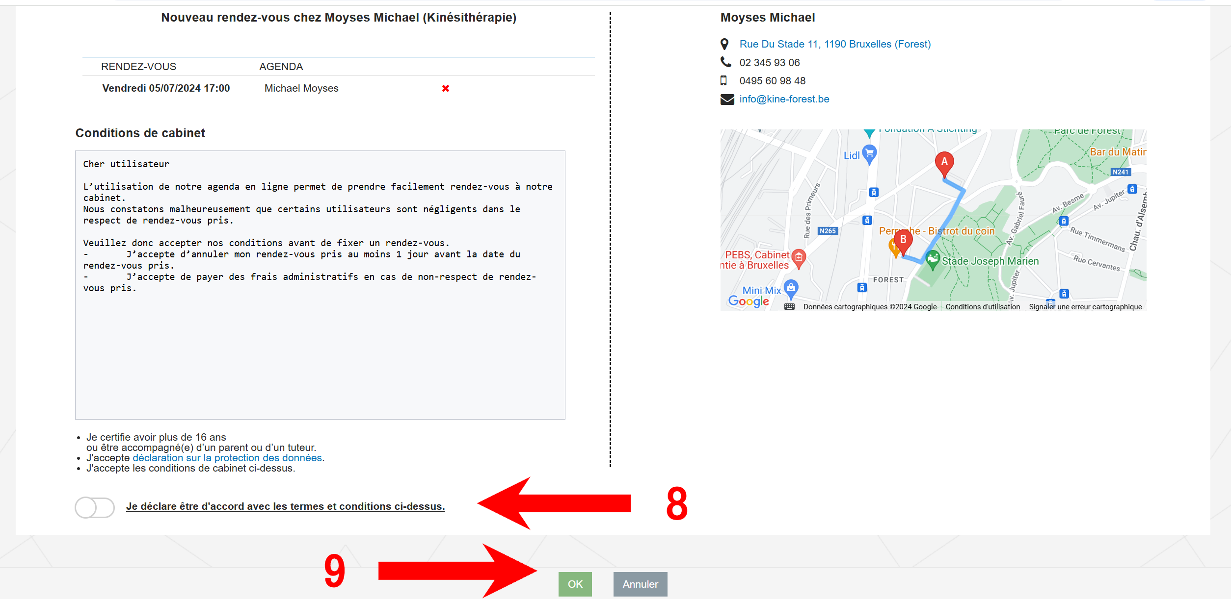 - Validez la prise de rendez-vous en cliquant sur OK (info)
